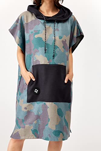 Nomadix Changing Poncho - XS - Quick Dry & Absorbent Hooded Surf & Swim Poncho - Sewn Sides for Private Changing - Front Pocket Storage - Made from Post-Consumer Recycled Materials - Camo Green 1