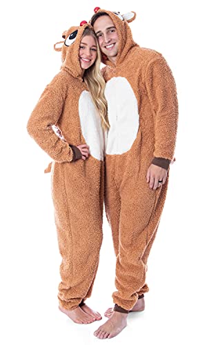 HOT ! Seven Times Six Rudolph The Red-Nosed Reindeer Adult Sherpa Fleece Union Suit Pajama One-Piece (Rudolph, X-Large)