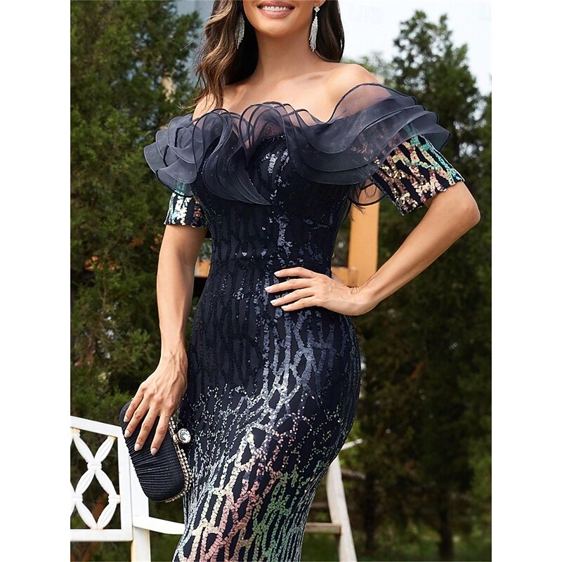 HOT ! Mermaid / Trumpet Quinceanera Dresses Elegant Dress Formal Wedding Floor Length Short Sleeve Off Shoulder Polyester Backless with Sequin Ruffles