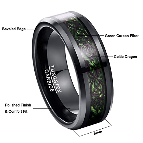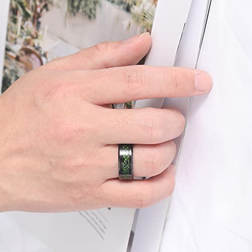 8mm Black Tungsten Rings for Men Celtic Dragon Wedding Ring with Blue/Green Carbon Fiber/Red Opal Paper Inlay Comfort Fit Size 5-14 7