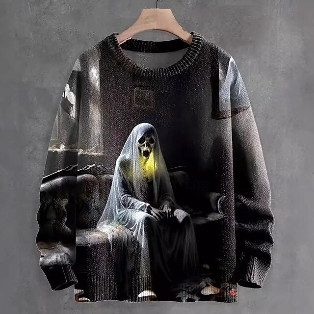 More information about Halloween Men's Ghost Pullover Sweater Jumper Knitwear Crewneck Casual Dark Street Daily 3D Print Knitting Keep Warm Long Sleeve Spring Fall Winter Black Blue Brown