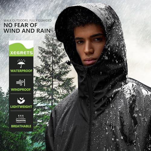 Men's backpack jacket Packable Waterproof Lightweight Raincoat Windbreaker Running Cycling Hiking Golf Travel BLACK 5