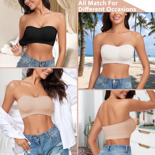 WOWENY Women's Strapless Bra Non-Slip Silicone Wireless Bandeau Bras with Support Seamless Padded Bralette Tube Top Bra 3