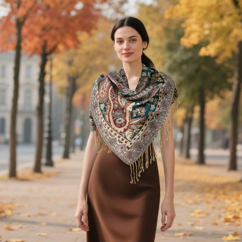 • Pashmina Scarf for Women Size:68x27 INCH (172*70cm) tassels 3 inch. This reversible paisley shawl wrap for women features two beautiful color tones in one piece. You can choose any side to wear, meeting your matching needs and freshness,you can use it as a warm winter scarf, formal shawl wraps for evening or wedding dresses, hijab, skirt, even as curtain, table cover, etc. brighten your outfit or room