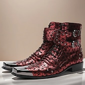 More information about Men's Red Geometric Pattern Lace-Up Boots – Gothic Punk Pointed Toe Ankle Shoes for Concerts, Cosplay and Clubwear