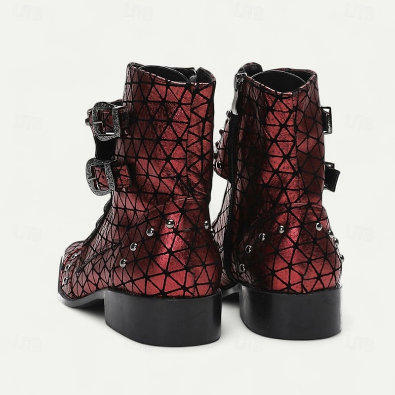 Men's Red Geometric Pattern Lace-Up Boots – Gothic Punk Pointed Toe Ankle Shoes for Concerts, Cosplay and Clubwear 4