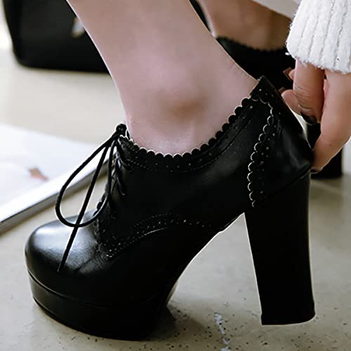 Uniquelly Womens High Platform Ankle Boots Block Heel Booties Round Toe Lace Up Pumps Elegant Dress Shoes 4