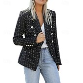 More information about Women's Blazer Comfortable Buttons Elegant Fashion Outdoor Lattice Going out Casual Daily Weekend Cardigan Regular Lapel Regular Fit Long Sleeve Outerwear Black White Green Spring Fall