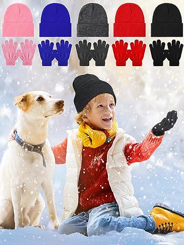 Funtery 48Pcs Kids Winter Beanie and Gloves Set Bulk Pack Knit Hat Unisex Magic Gloves Pack Winter Gift for Boy Girl Donation 5