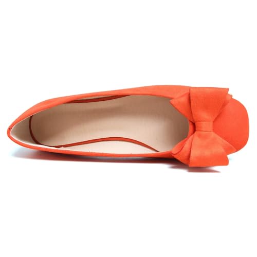 HuangTaiJi Qing Women's Bow-Knot Ballet Flats Suede Square Toe Dressy Flat Shoes Comfortable Walking Slip-On Loafers 5