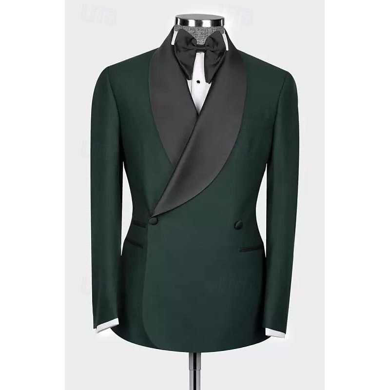 HOT ! Men's Wedding Party Suits Shawl Lapel Shawl Collar Navy Blue Dark Green Daily Lightweight Solid Colored Tailored Fit 2 Piece Double Breasted Two-buttons