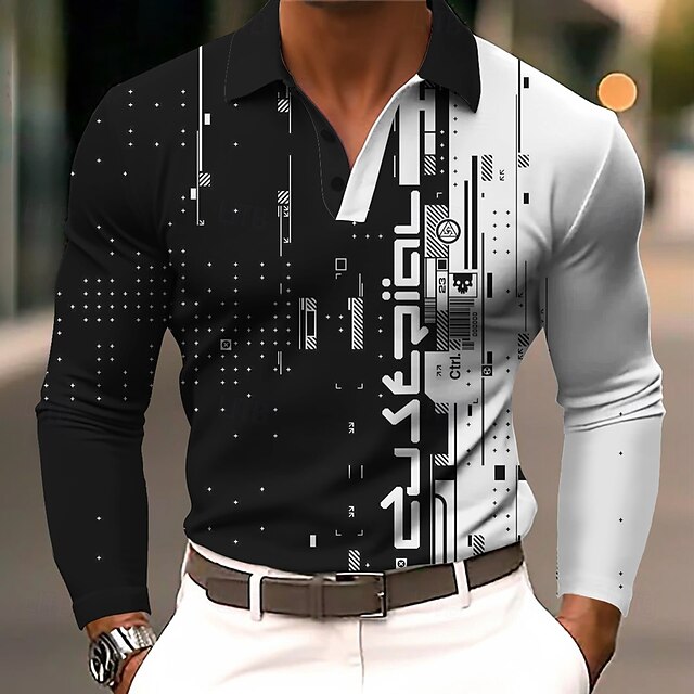 Men's Geometric Polo Long Sleeve Polo Shirts Lapel Business Casual Athleisure Daily Wear 3D Print Buttons Spring Fall Winter White Blue Purple 10