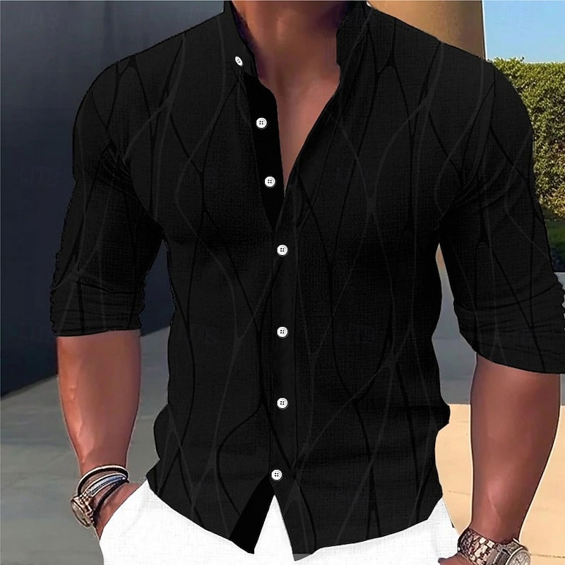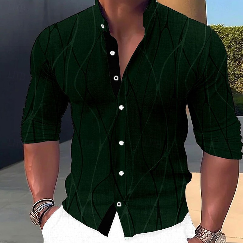 More information about Men's Shirt Dress Shirt Geometric Pattern Outdoor Casual Black White Dark Green Brown Long Sleeve Stand Collar Summer Spring Clothing Apparel Print