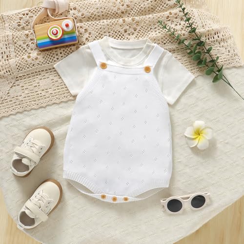 DovFanny Newborn Baby Knit Romper Sleeveless Strap Bodysuit Soft Breathable Summer Outfit for Girls Boys 7