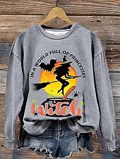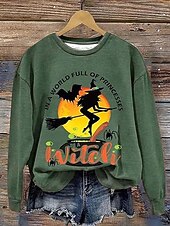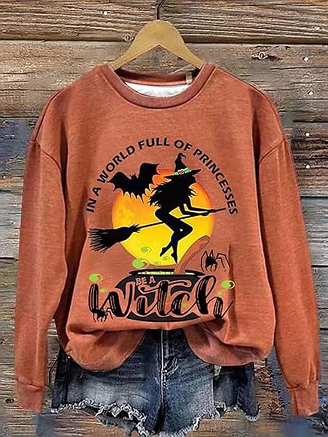More information about Halloween Women's Pullover Sweatshirt Witch Graphic Fashion Casual Long Sleeve Crew Neck Regular Tops Street Dailywear Casual Print Orange Green Beige Gray Fall Winter