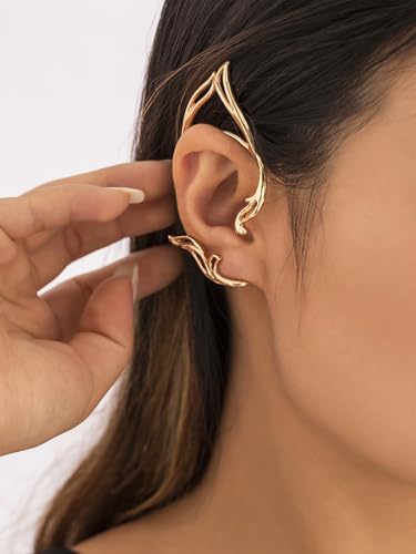 Gothic Elves Ear Cuffs 2pcs Gold Fairy Ears Punk Elves Ear Wrap Earrings Adjustable Non-pierced Fake Earrings for Cosplay Cartilage Climber Ear Hip Hop Clip on Statement Earring Gift for Women (Gold) 1