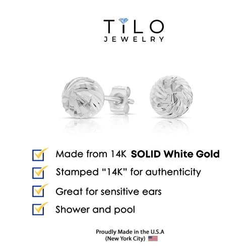 HOT ! 14K White Gold Diamond-cut Ball Stud Earrings with Spiral Hand Engraving, Secure Push-Backing…