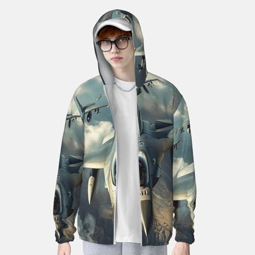 • UV Protection: Our Aircraft Fighter Jets long sleeve sun shirts features cutting-edge UPF 50+ technology, effectively blocking UV rays to ensure robust sun protection during your outdoor adventures. Designed with a hood to protect the neck, and other sun-exposed areas. Ideal for extended outdoor activities