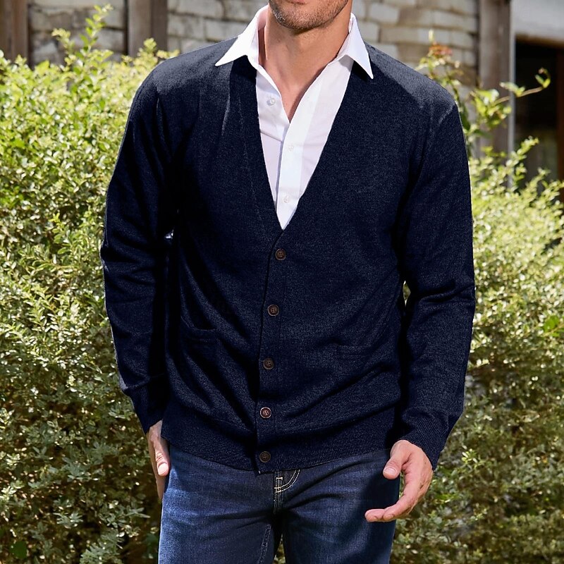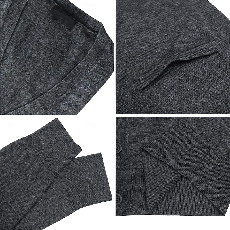 More information about Men's Cardigan Sweater Dress Sweater Knit Sweater Ribbed Knit Regular Button Up Side Pockets Solid Color V Neck Fashion Classic Daily Wear Date Clothing Apparel Fall & Winter Black Burgundy M L XL