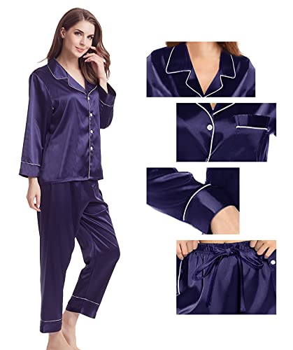 More information about Womens Pajama Set Silk Satin Pajamas Long 2pc Pjs Button Down Sleepwear Pj Set Loungewear