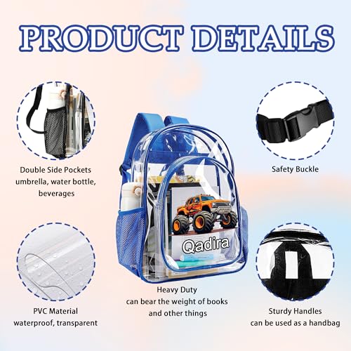 More information about Personalized Kids Clear Backpack For Boys Girls, Custom Clear Backpack With Name Car Decor, Heavy Duty PVC Transparent Bookbag, First Day Of School Kindergarten Toddler Teen Schoolbag