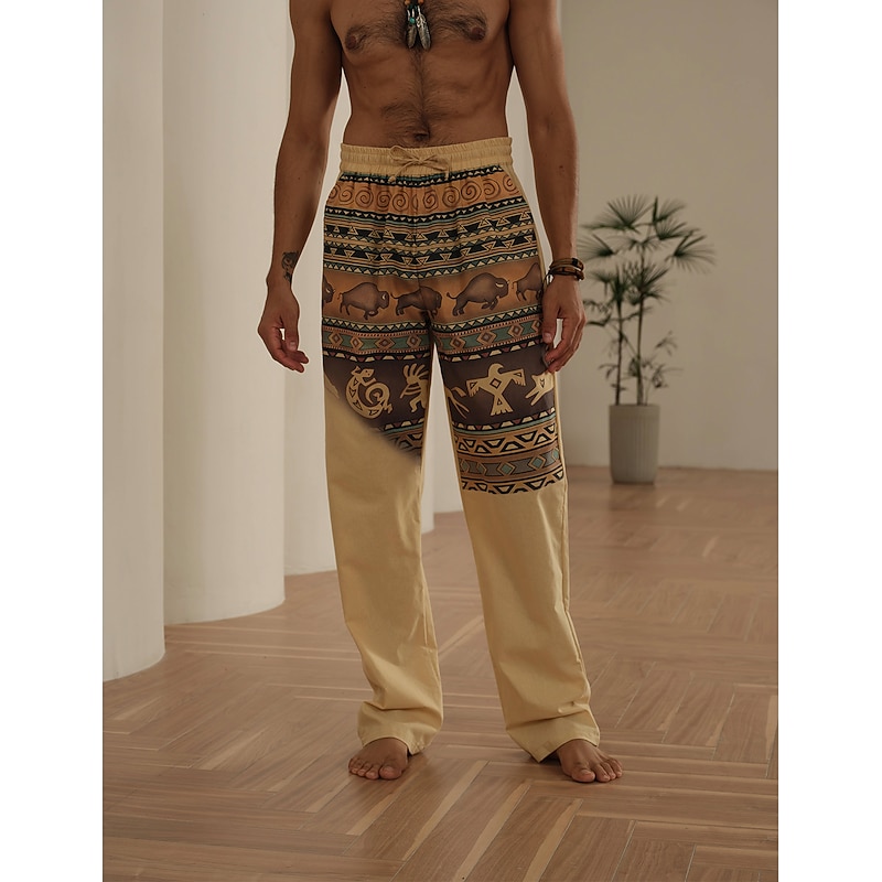 More information about Men's Color Block Cow Graphic Prints Linen Pants Trousers Baggy Pants Mid Waist Streetwear Hawaiian Designer Casual Daily Holiday Drawstring Elastic Waist 3D Print Autumn / Fall Spring & Summer 3D