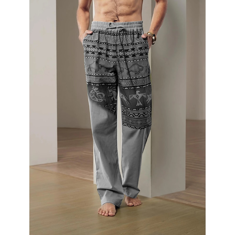 Men's Color Block Cow Graphic Prints Linen Pants Trousers Baggy Pants Mid Waist Streetwear Hawaiian Designer Casual Daily Holiday Drawstring Elastic Waist 3D Print Autumn / Fall Spring & Summer 3D