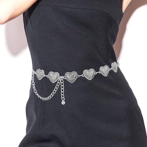 HOT ! Western Heart Chain Belts for Women, Metal Concho Trendy Cowgirl Boho Belt for Country Skirt Jeans Dresses Pants