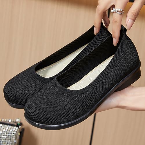 HOT ! Ballet Flats Shoes for Women Comfortable Casual Work Dress Shoes for Women Wide Width Foldable Knit Flats with Arch Support