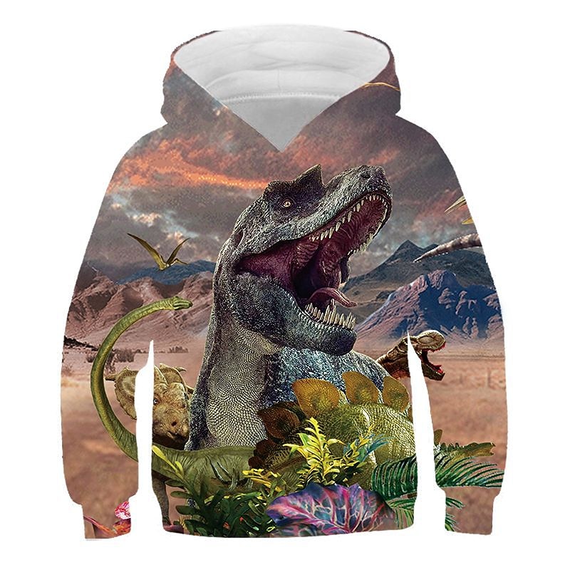 Kids Boys Hoodie Dinosaur Long Sleeve Fall Winter Active Fashion Cotton Casual 15