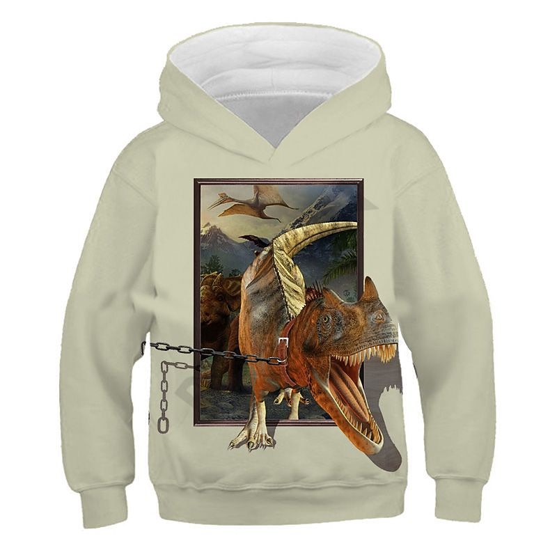 Kids Boys Hoodie Dinosaur Long Sleeve Fall Winter Active Fashion Cotton Casual 1