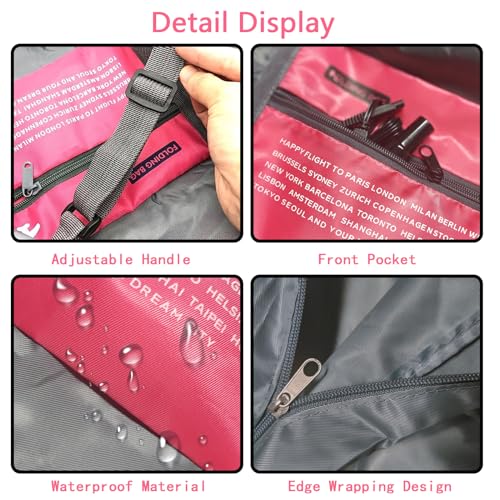 INVODA Travel Bag Foldable Duffle Bag Lightweight Luggage Bag Personal Item Bag for Airlines Weekender Carry on Bag Tote Overnight Bag With Waterproof Drawstring Bags (Rose+Waterproof Bag) 5