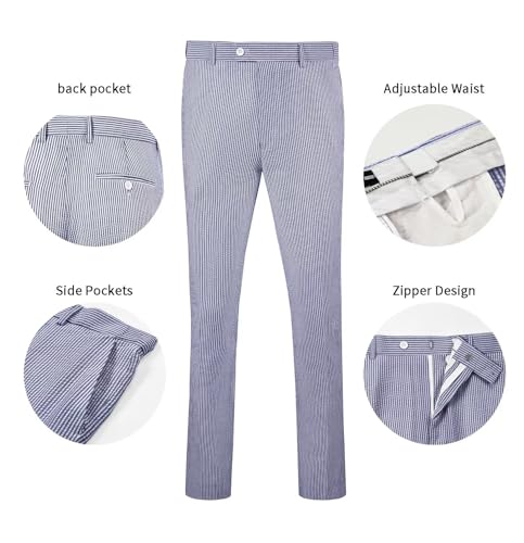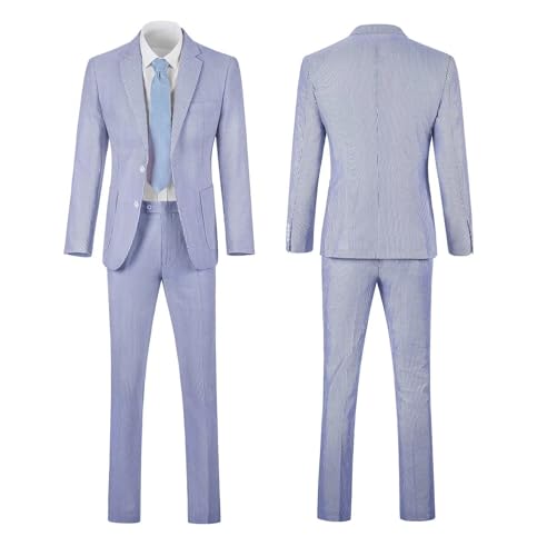 Mens Seersucker Suit Slim Fit Suits for Men Summer Striped Wedding Prom Party Dinner 2 Piece Daily Suit Jacket Blazer Pants Blue M