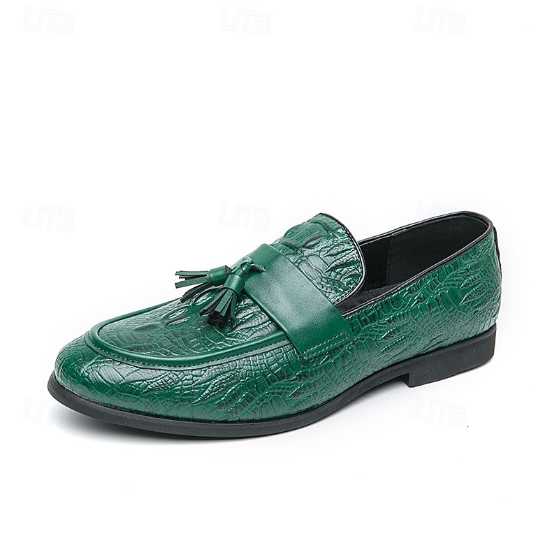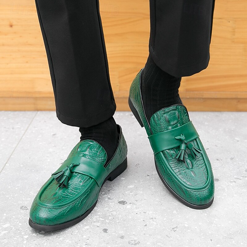HOT ! Men's Green Faux Leather Loafers with Crocodile Embossed Detailing - Stylish Casual Shoes for Everyday Wear, Comfortable and Trendy for Men