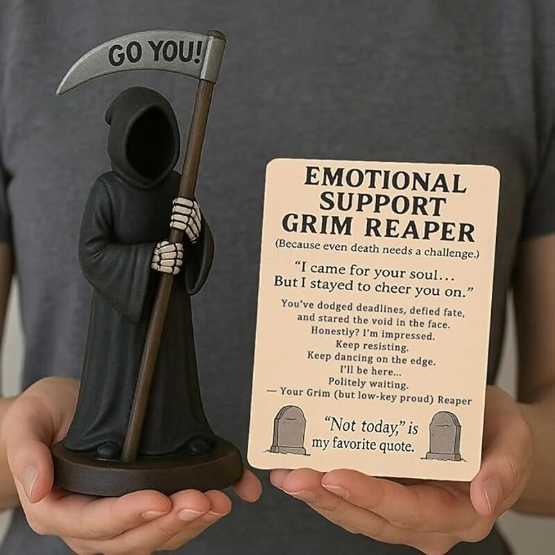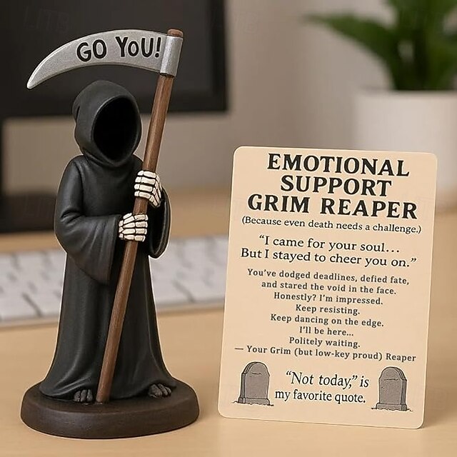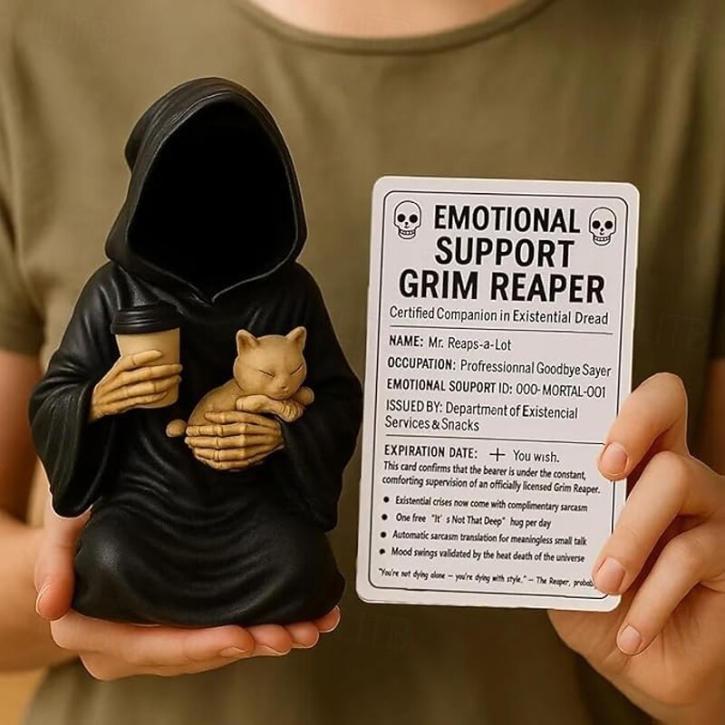 $27.99 - Emotional Support Grim Reaper Figurine, STAtue of The Grim REAper Holding Coffee,Resin GRIM Reapers S-tatue Holding Coffee,Ironic Gothic Black Robe Mysterious Statue Desktop Decoration 2025. Shop for cheap Halloween online? Buy at lightinthebox.com on sale today!