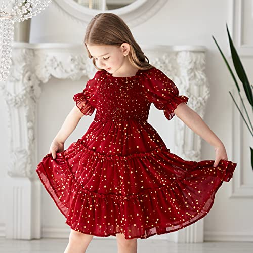 Girls Dresses Kids Stars Midi Dress Mid Night Toddler Short Sleeve Casual Fashion Clothes Flowy Outfits 4