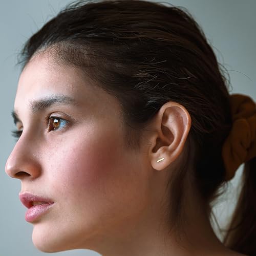 Hoberta Real 14K Solid Gold Tiny Line Bar Stud Earrings for Women & Girls - Hypoallergenic for Sensitive Ears, Small & Minimalist Jewelry for Valentine Gifts 7