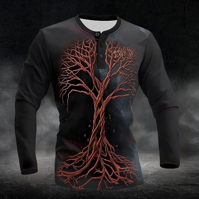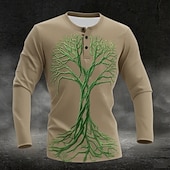 More information about Men's Graphic Tree Henley Shirt Long Sleeve Fashion Cute Daily Casual Holiday Going out Spring & Fall All Seasons Black Khaki Light Grey Henley Henley T-Shirt