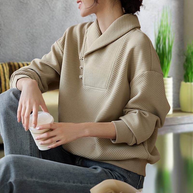 More information about Women's Pullover Sweatshirt Plain Casual Long Sleeve V Neck Regular Tops Street Going out Patchwork Khaki Fall Winter