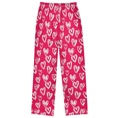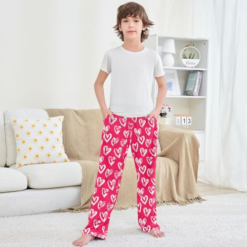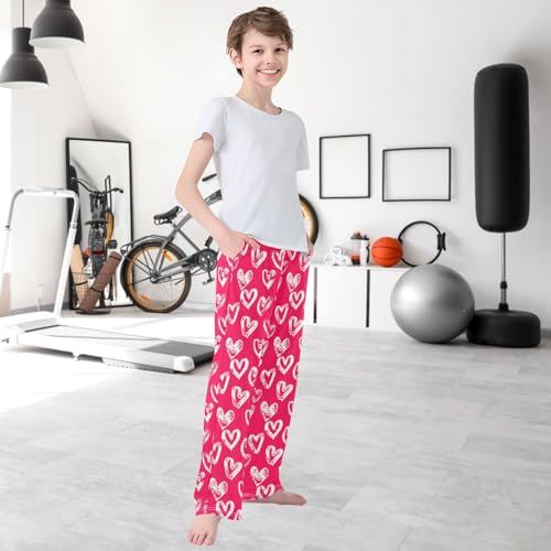 HOT ! Boy's Lounge Pants Valentines Day White Heart Red Kids Jogger Pants Elastic Waist Long Bottoms with Pockets 6-14 Y