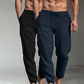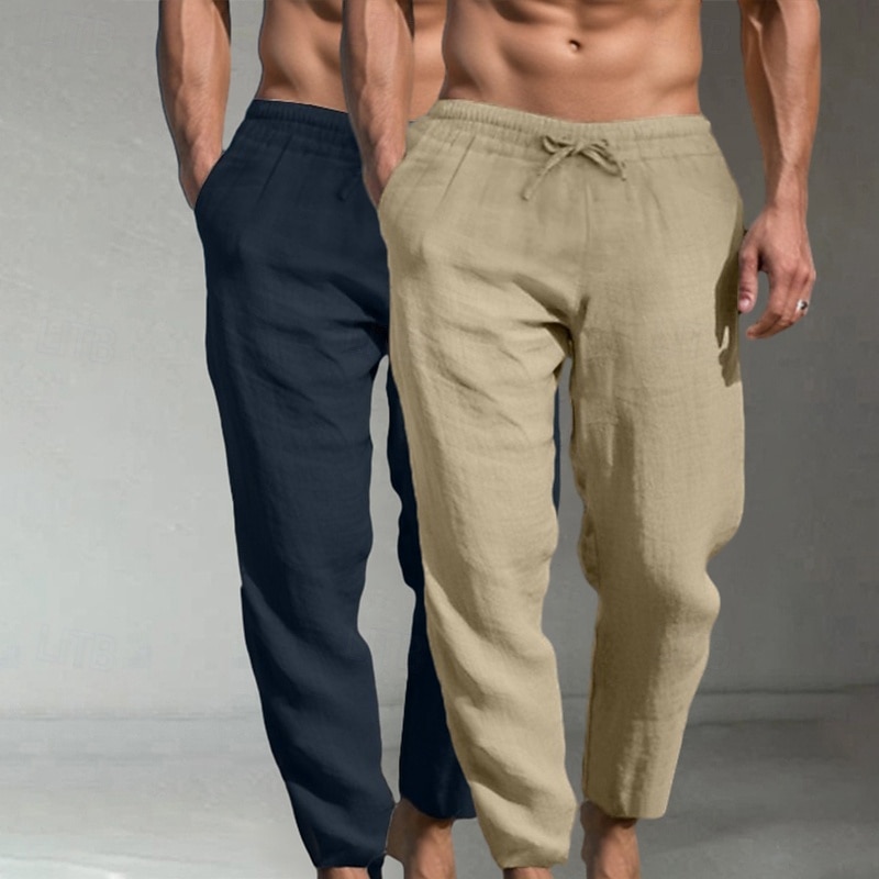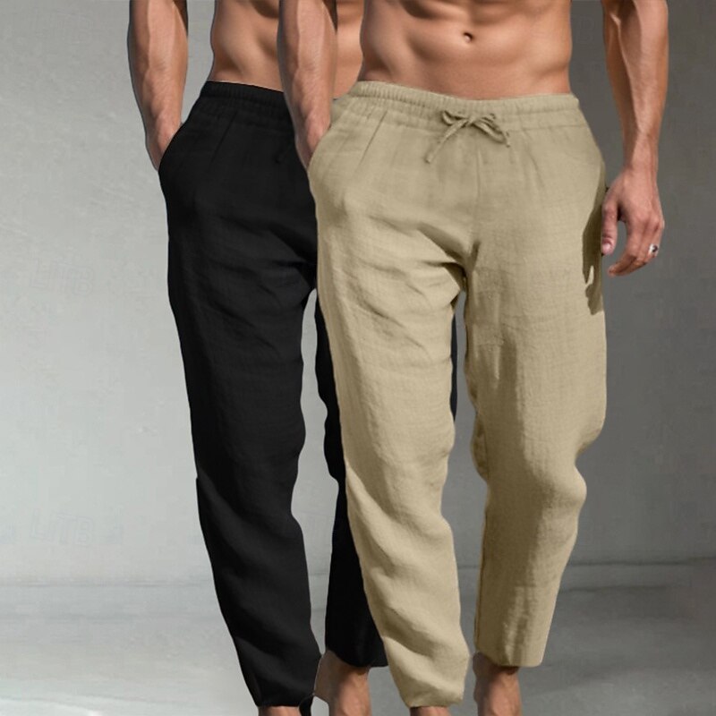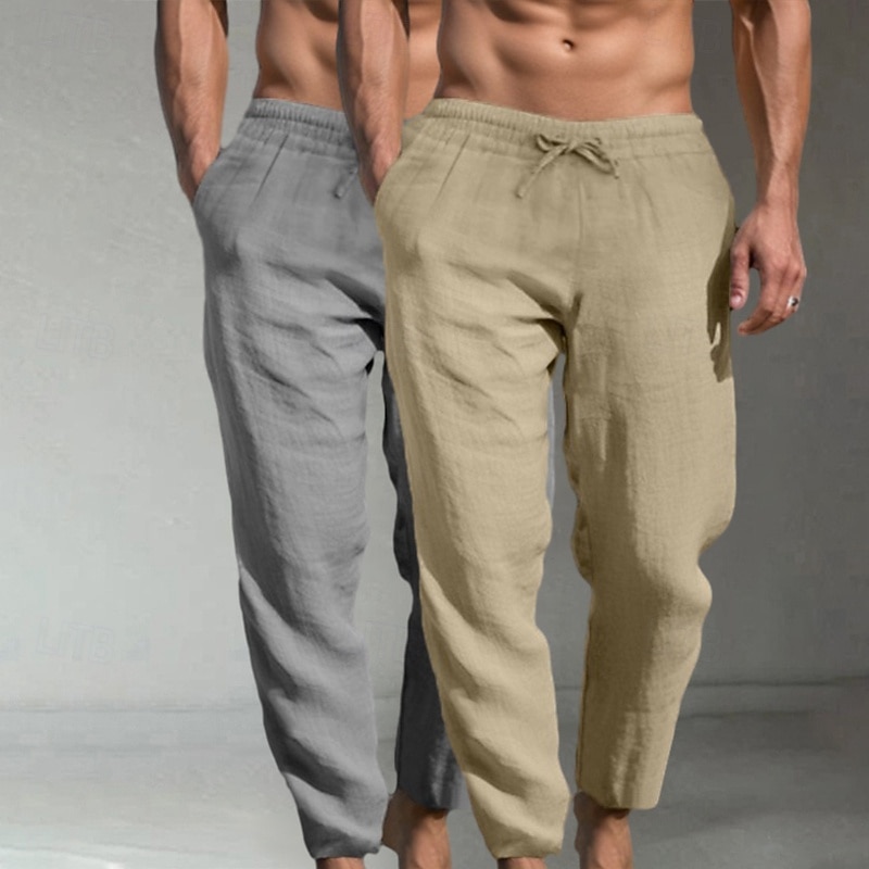HOT ! Men's Linen Pants Trousers Summer Pants Baggy Pants Beach Pants Pocket Elastic Waist Drawstring Plain Comfort Full Length Daily Weekend Vacation Streetwear Black+Grey White+khaki Inelastic