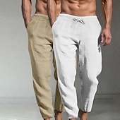 More information about Men's Linen Pants Trousers Summer Pants Baggy Pants Beach Pants Pocket Elastic Waist Drawstring Plain Comfort Full Length Daily Weekend Vacation Streetwear Black+Grey White+khaki Inelastic