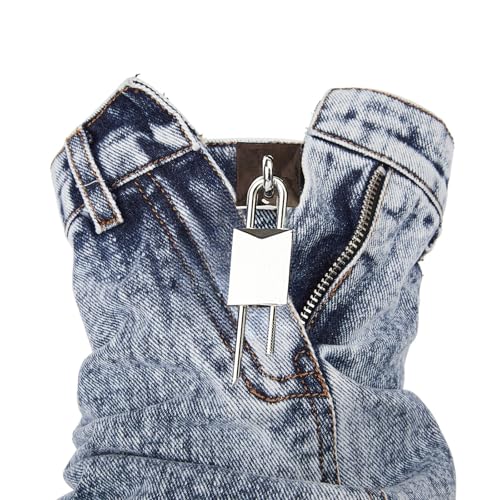 Mid Calf Denim Boots for Women Round Toe Fold Over Jeans Booties with Padlock Thick Bottom Platform Boots Vintage Fashion Western Cowboy Shoes 4