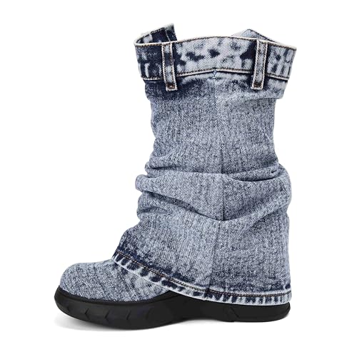 • Occasion: These women's fold-over jeans boots can be paired with any outfit in your wardrobe, perfect for daily wear such as parties, dating, entertainment, gatherings and so on.