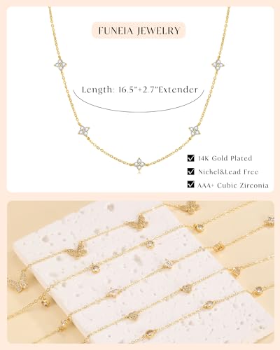 HOT ! FUNEIA Dainty Silver Gold Necklaces for Women Trendy Non Tarnish 14K Gold Plated Cubic Zirconia Necklace Layered Cute Butterfly Heart Station Choker Necklace Stack for Wedding Prom Brides Jewelry