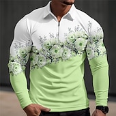 Kentucky Derby Men's Floral Hawaiian Polo Shirts Golf Shirt Long Sleeve Polo Shirts Collared Shirts Casual Beach Wear Vacation Wear Tropical Wear Party Outfits 3D Print Quarter Zip Polo Fall & Winter 9