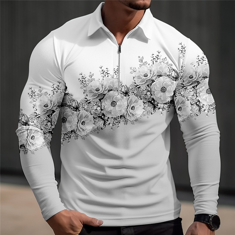 Kentucky Derby Men's Floral Hawaiian Polo Shirts Golf Shirt Long Sleeve Polo Shirts Collared Shirts Casual Beach Wear Vacation Wear Tropical Wear Party Outfits 3D Print Quarter Zip Polo Fall & Winter 8