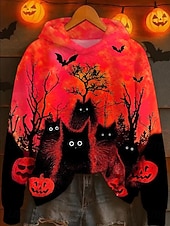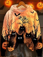 More information about Women's Hoodie Pullover Sweatshirt Oversized Long Sleeve Casual Graphic Animal Cat Vintage Fashion Western Hooded Regular Tops Street Dailywear Patchwork Print Brown Gray Fall Winter