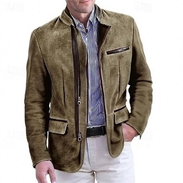 More information about Men's Faux Suede Jacket Faux Suede Blazer Casual Jacket Vacation Daily Warm Pocket Fall Winter Plain Fashion Classic Stand Collar Regular Khaki Gray Jacket