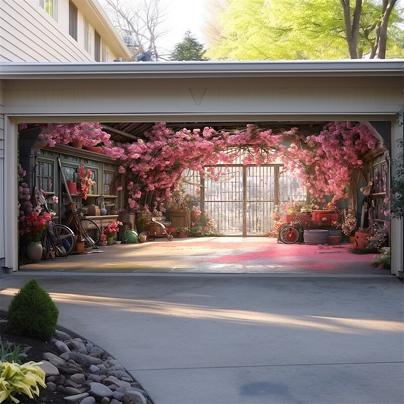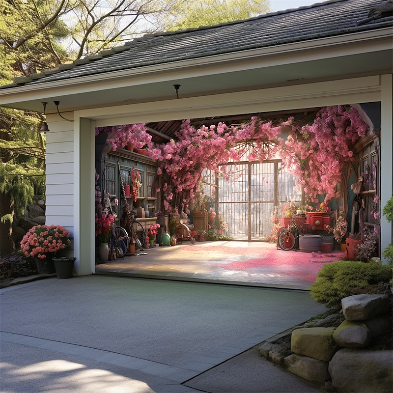 Valentine's Day Floral Outdoor Garage Door Cover Banner Beautiful Large Backdrop Decoration for Outdoor Garage Door Home Wall Decorations Event Party Parade 9